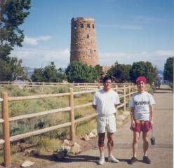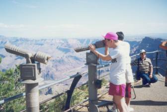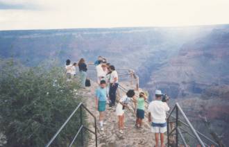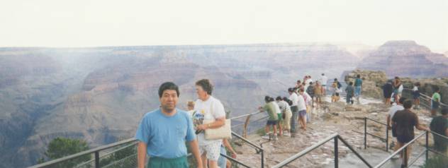 1991年に、ラスベガスでレンタカー(キャデラック)を借り、デスバレイ、グランドキャニオン、チェリー国立公園、 モニュメントバレー、レイクパウエル、ブライスキャニオンをかすめ、ザイオン国立公園の中を巡り、ラスベガスへ戻りました。 ここで取り上げるのは、あくまでもグランドキャニオンでその他の場所は、別枠で紹介します。 このグランドキャニオンは、日本人がアメリカで行って見たい場所というと、NO1は多分この公園でしょう。 日本でのコマーシャル、また旅行会社の推薦、パンフレットも一番多いのではないのでしょうか。 この景色を見ると、雄大な景色に圧倒され、仕事でのいざこざや、人間関係の些細なもめごとなど全て吹っ飛んでしまいます。 ただ、後で行くモニュメントバレー、レイクパウエルの景観がすごくて、グランドキャニオンも少し影か薄くなりました。 ここの最大の見所である、マーサーポイントのそばのロッジへ泊まり、早朝に朝日が昇ってくるのを見れたのは最高でした。 一人で朝日を見に行ったのですが、すれ違う人と挨拶を交わすと、殆どの人はアメリカ人ではなく、ヨーロッパからの観光客のようでした。 |