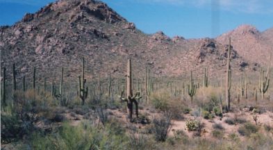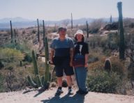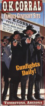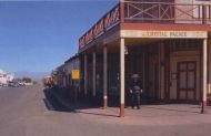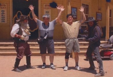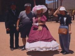 暑い 暑い とにかく暑い!! アリゾナも南へ来ると40℃前後の暑さ、乾燥しているので勝手に汗がサッと流れて行きます。 このサワロ国立公園は、アリゾナ州フェニックスに次ぎ2番目の都市ツーソンの両サイド町はずれにあります。 ここには柱状サボテン(これをサワロと呼びます)が林立しており見渡す限りサボテン状態です。 この国立公園内にオールドツーソンがありショーが行われています。 そしてこのツーソン近郊にツームストンがあり西部劇の町として有名、OK牧場の決闘の場所です。 この日はワイアットアープショーが行われるという事で町の人々や愛好家がカーボーイやマドンナになり切り 町中を朝早くから歩いています。 |